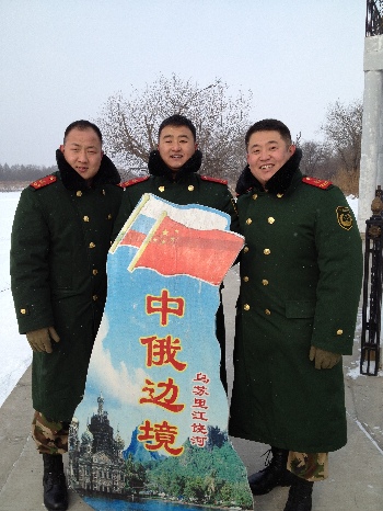 随同中央电视台《军营大拜年》栏目组赴珍宝岛边防团慰问演出(右一为赵凯)