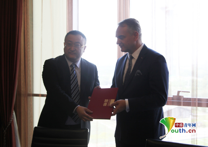波兰前总理瓦尔德马·帕夫拉克与CRDRI智库签署《引进波兰文化遗产保护修复技术和人才培养备忘》 。 中国青年网记者 吴迪 摄