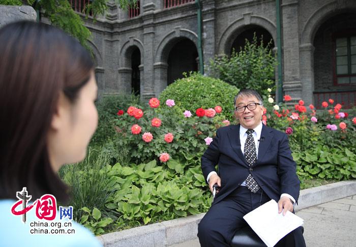 中国社科院日本研究所副所长张季风研究员在日本所所在的“段祺瑞执政府旧址”东院内接受中国网记者专访。(杨佳 摄)