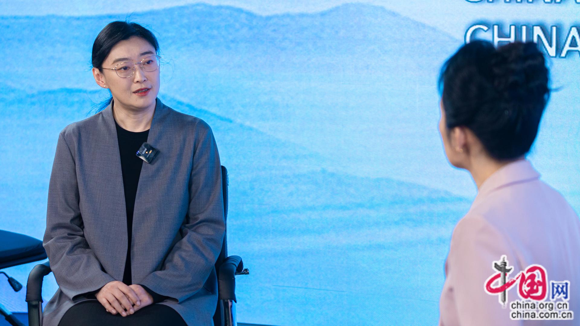中共中央党校(国家行政学院)社会和生态文明教研部教授王茹解码“两山”理念的创新与实践。(中国网记者 伦晓璇 摄影)