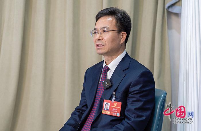 全国人大代表、呼和浩特市市长贺海东接受中国网《中国访谈》专访。(摄影:郑亮)
