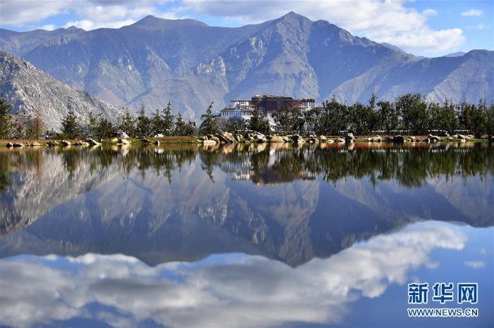 蓝天白云和绿水之间的西藏布达拉宫(6月5日摄) 新华社记者 觉果摄