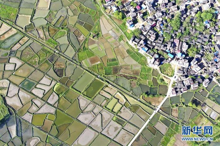 湖南省永州市道县濂溪河畔的田园春景(4月16日无人机拍摄) 新华社发
