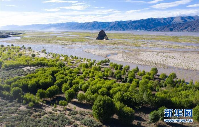 西藏雅鲁藏布江两岸栽植的树木(7月16日无人机拍摄) 新华社记者 普布扎西摄