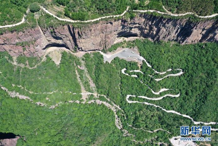 这是河南省辉县市郭亮村的绝壁峡谷(5月22日无人机拍摄) 新华社记者 冯大鹏摄